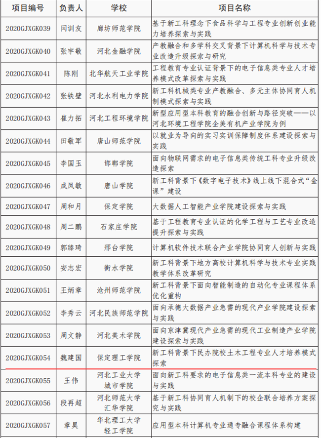 我校《新工科背景下民办院校土木工程专业人才培养模式探索》 课题入选河北省