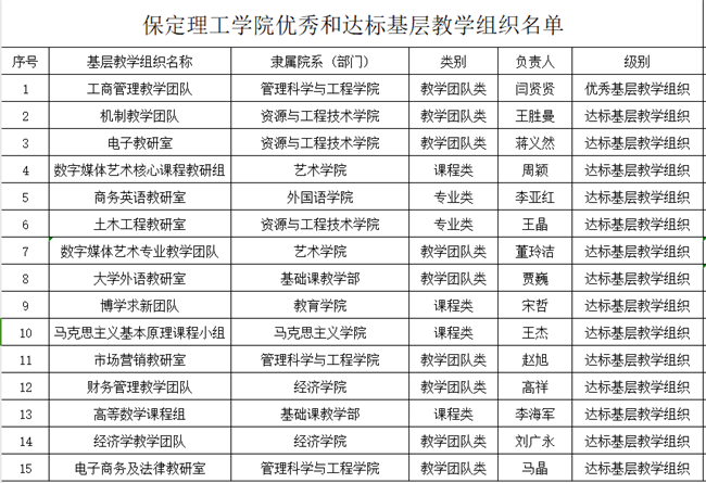 文章导读:近日,河北省教育厅下发了《河北省教育厅关于公布2023年度河北省高等学校优秀和达标基层教学组织名单的通知》(冀教高函〔2023〕80号)文件,2023年度河北省高等学校优秀和达标基层教学组织名单揭晓,我校推荐的“工商管理......