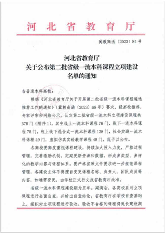 文章导读:日前,河北省教育厅下发了《关于公布第二批省级一流本科课程立项建设名单的通知》(冀教高函〔2023〕84号),我校推荐申报的《微观经济学》《室内设计实训》《财政学》《Web前端开发》《基于Mulitisim的数字电子技术虚拟......