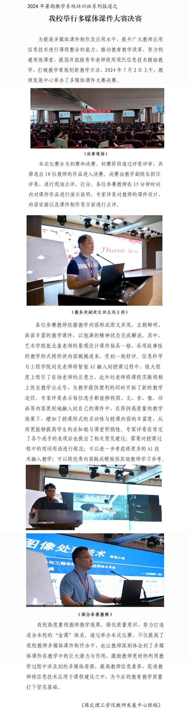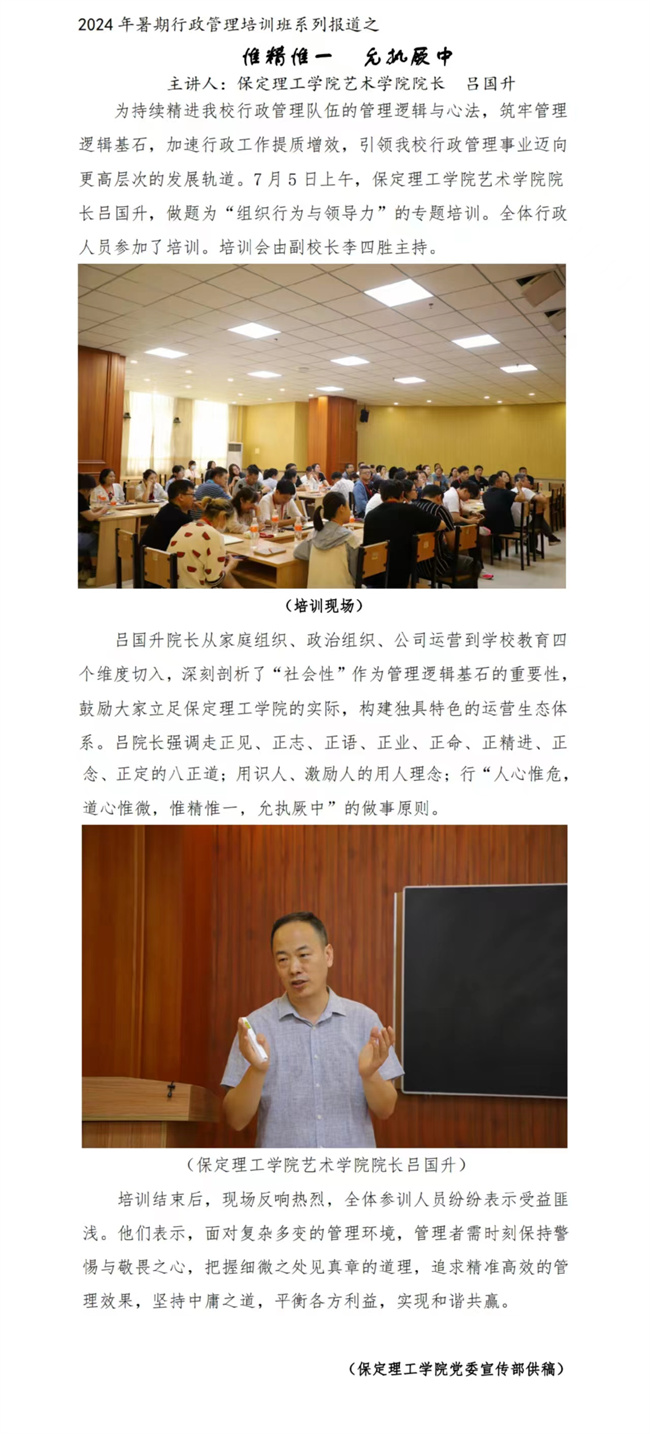 文章导读:2024年7月12日上午,在一教211报告厅,我校邀请河北民族师范学院副校长李克军一行3人做合格评估专题讲座和工作指导,全体校领导与科级以上干部参加讲座。讲座由教学顾问高宝嘉教授主持。首先李克军教授以“本科教学工作......
