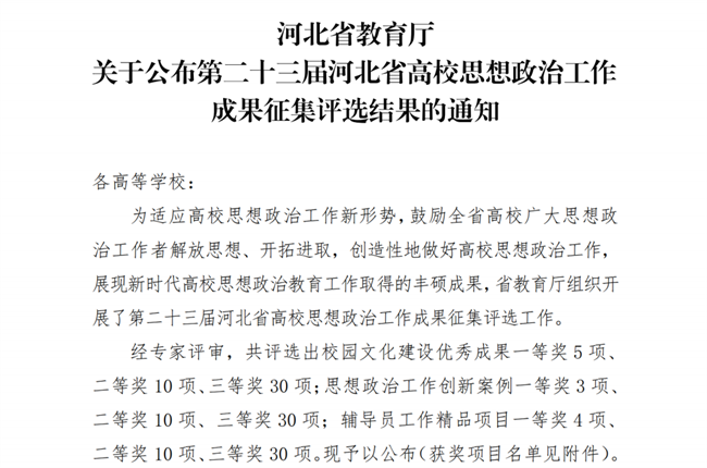 喜报!威廉体育williamhill思政育人案例荣获河北省高校思想政治工作成果评选三等奖