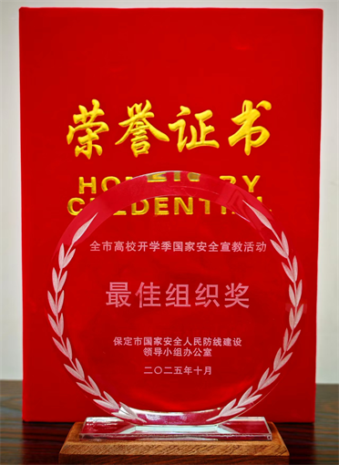 文章导读:近日,保定市国安委发布通报,对9月份部署的高校国家安全宣传教育工作成效进行表彰。我校凭借突出表现,在保定市各高校中脱颖而出,斩获全市高校排名第一的优异成绩,并荣获“国家安全教育最佳组织奖”!(“最佳组织奖”奖......