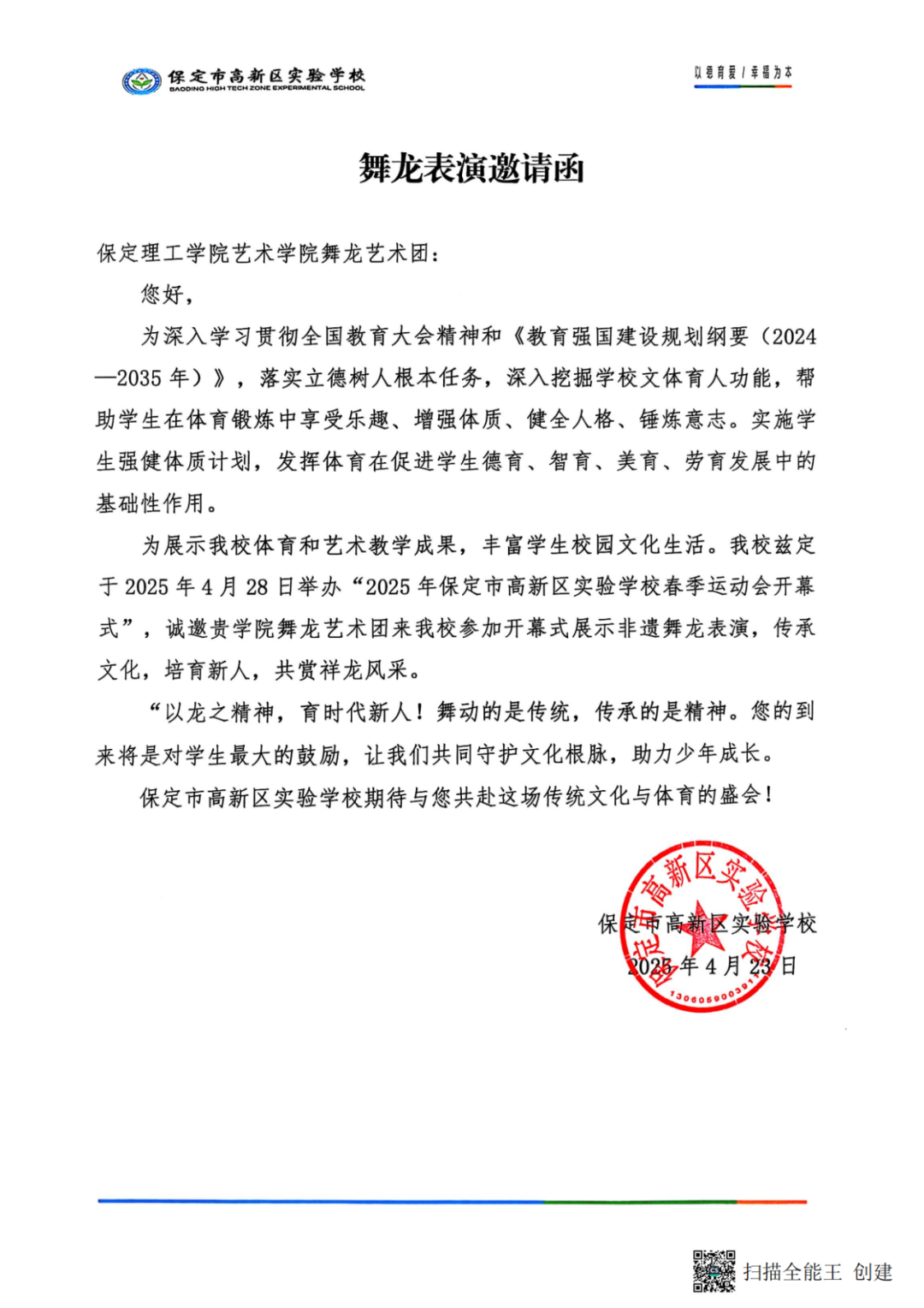 为弘扬中华优秀传统文化,深化校际艺术交流,威廉体育williamhill艺术学院师生走进保定市高新区实验学校,开展精彩绝伦的舞龙活动。锣鼓铿锵,彩龙翻腾,艺术学院学子们以灵动